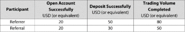 1. إذا كان المحيل والمحال إليه من الدول المصنفة في المستوى 1 والتي تشمل المملكة المتحدة، فرنسا، كندا، ألمانيا، الدنمارك، سويسرا، النرويج، هولندا، السويد، النمسا، أيرلندا والتي تستوفي الشروط: يمكن أن يكون المحيل مؤهلاً للحصول على مكافأة إحالة بقيمة 150 دولار أمريكي (أو ما يعادلها) ويمكن أن يكون المحال إليه مؤهلاً للحصول على مكافأة بقيمة 100 دولار أمريكي (أو ما يعادلها).