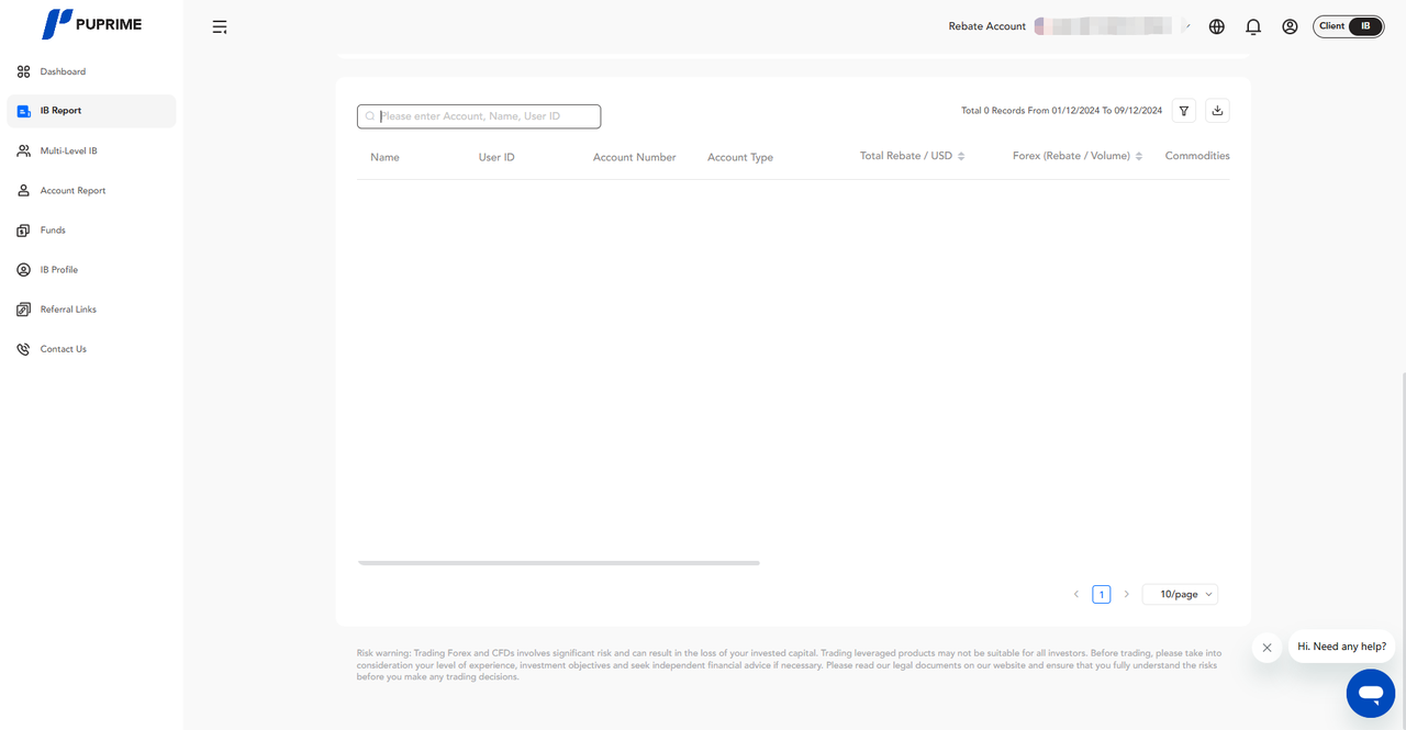 Help Center | PU Prime | More Than Trading Partnership IB أين يمكنني تحميل تقرير IB الخاص بي؟ يمكن للوسيط المعرف تنزيل التقرير الخاص به بعد تسجيل الدخول إلى بوابة الوسيط المعرف، انقر على ”تقرير الوسيط المعرف“ يتوفر نوعان من التقارير تقرير الأموال - لعرض الإيداع، السحب وصافي التمويل للعملاء تقرير الخصم - للاطلاع على الخصم المتولد من العملاء