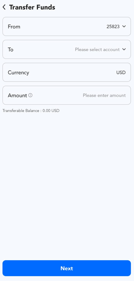 Help Center | PU Prime | More Than Trading PU Prime App استعلام اپلیکیشن PU Prime كيفية تنفيذ تحويل الأموال؟ 1. انقر على زر ”الملف الشخصي“. 2. انقر على زر ”نقل“. 3. أدخل تفاصيل تحويل الأموال وانقر على ”التالي“ لمتابعة تحويل الأموال.