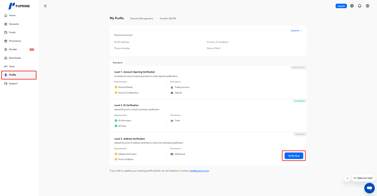 Sobald Ihre ID-Überprüfung bestanden ist, können Sie auf den Tab "Profil" klicken und "Jetzt verifizieren" wählen.