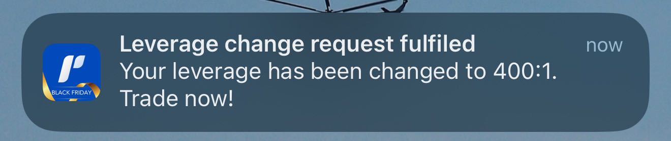 6. A pop-up notification will appear on your mobile device to confirm that the account leverage change was successful.