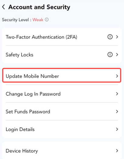 3. Haz clic en el botón "Actualizar número de móvil".
