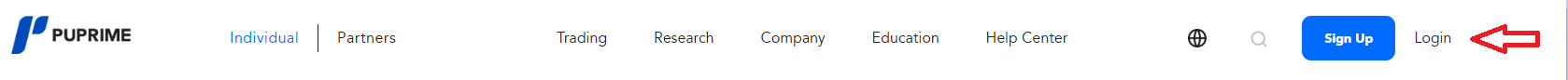 Mangyaring pumasok sa opisyal na website ng PU Prime sa pamamagitan ng https://www.puprime.com/, i-click ang "Login" sa itaas na kanang sulok ng pahina.