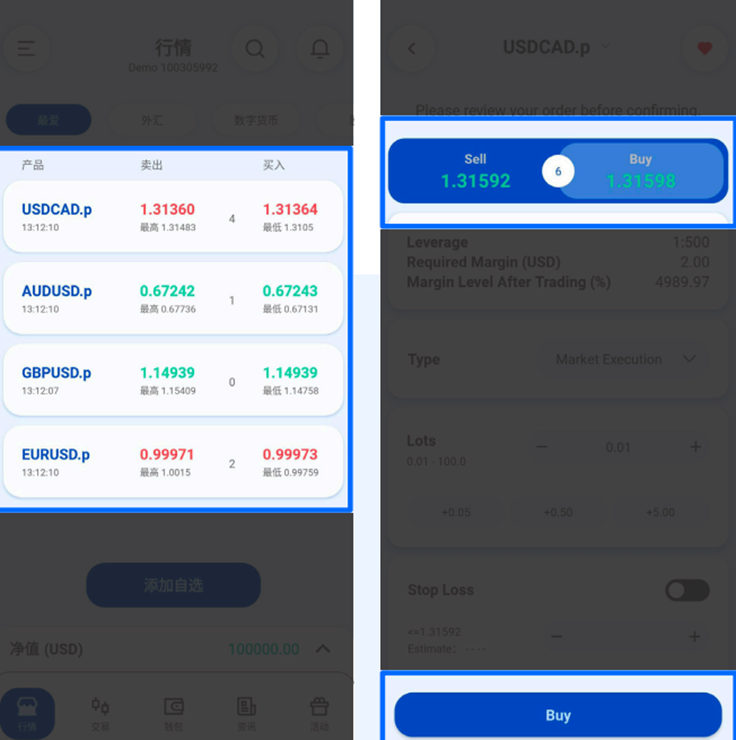 I-click ang 'Buy' kung nais mong kumuha ng mahabang posisyon.