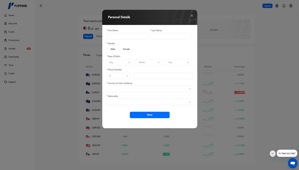 *Veuillez vous assurer de ne pas être résident des États-Unis, de Singapour, de l'Australie ou de la Chine, car PU Prime n'accepte pas les clients de ces pays.