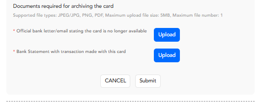 एक बार "Archive" का चयन करने के बाद, आपको संग्रहण प्रक्रिया के साथ आगे बढ़ने के लिए आवश्यक दस्तावेज़ अपलोड करने होंगे।