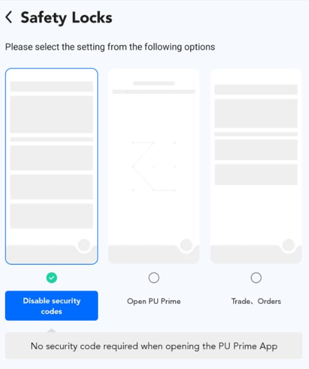 Help Center | PU Prime | More Than Trading Aplikasi PU Prime? Permintaan Aplikasi PU Prime Bagaimana cara mengubah kode keamanan? 1. Klik tombol "Profile". 2. Klik "Account and Security". 3. Klik "Safety Locks". 4. Anda dapat mengatur Fingerprint atau Pattern unlock untuk kode keamanan Anda.