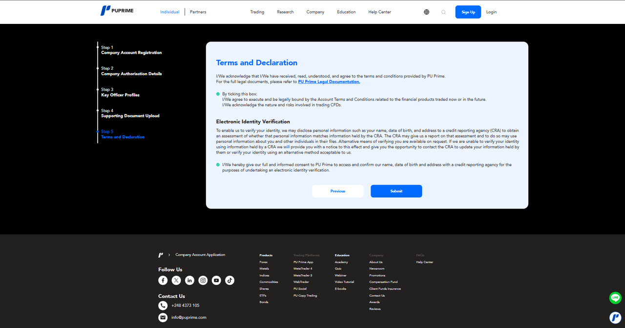 Passaggio 5: Leggi attentamente la "PU Prime documentazione legale" e spunta entrambe le caselle, quindi clicca su "Invia".