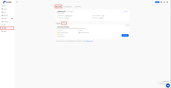 Il cliente deve completare la procedura di verifica “Plus” per poter effettuare un prelievo tramite bonifico bancario internazionale.