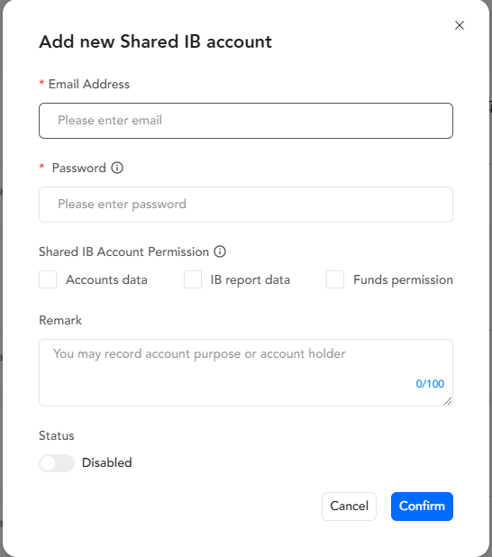 - 資金許可:IB資金を操作します(リベートの申請、リベートの転送、リベートの引き出し)、リベートを表示します(リベートレポート、残高、資金記録)。許可がない場合、操作は実行できません。