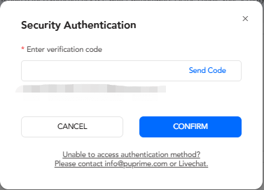 보안을 위해 인증 어플리케이션을 실행한 후 제공된 코드를 입력하세요. 인증 어플리케이션을 설정하려면 이 링크를 클릭하세요: https://helpcenter.puprime.net/hc/en-001/articles/9222563828111-How-to-modify-security-authenticator-application