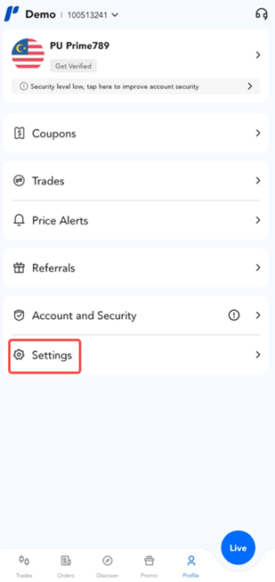 Help Center | PU Prime | More Than Trading PU Prime App Pertanyaan Aplikasi PU Prime Bagaimana untuk log keluar akaun daripada PU Prime App? 1. Ketik pada butang "Profile". 2. Ketik pada butang "Settings". 3. Ketik pada butang "Log Out" untuk keluar daripada akaun anda.