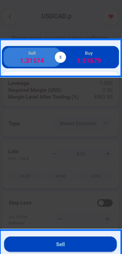 Klik 'Sell' jika anda ingin mengambil posisi pendek.