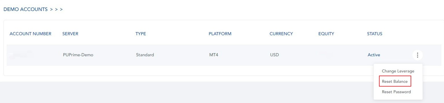 Клиент может войти в клиентский портал и выбрать "ДЕМО-СЧЕТ" в меню панели инструментов. Клиенту необходимо нажать на иконку сброса баланса, чтобы сбросить баланс демо-счета.