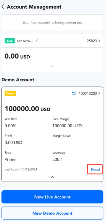 帮助中心 | PU Prime | More Than Trading PU Prime App PU Prime APP 咨询 如何重置模拟账户? 1. 点击“Account Management”按钮。 2. 点击箭头按钮。 3. 点击“Reset”,然后点击“Ok”以重置您的账户。