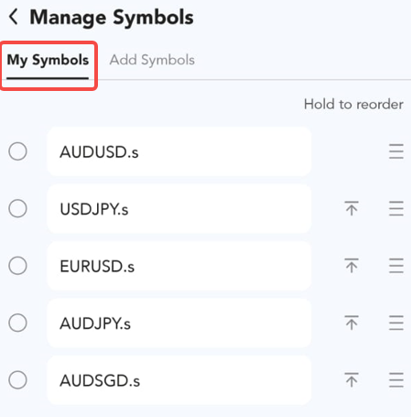 幫助中心 | PU Prime | More Than Trading PU Prime App PU Prime APP 諮詢 如何移除符號? 1. 點擊“Add Symbols”按鈕。 2. 點擊「My Symbols」。 3. 選擇您希望移除的符號。 4. 點擊“刪除”按鈕以刪除您的符號